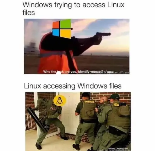 minus-squareDaddleDew@lemmy.worldlinkfedilinkarrow-up150·edit-28 months agoWindows: “There is something wrong with that weird drive I’ve just found. Do you want me format it to ‘fix’ it?” Me: “Alright Windows, your permission to exist on my computer has been revoked.”