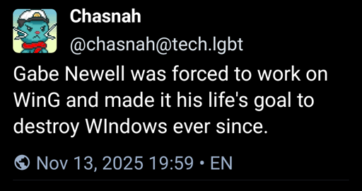 what interests me with gabe’s comments at the time is that he didn’t have the same complaints as the “normal users”. he didn’t comment on the UI basically at all, which makes sense because steam’s ten-foot interface released about the same time as metro. the ui was never the main problem with W8, it was the vendor lock-in that came from the microsoft store.